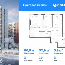 Строим кварталы для жизни с заботой о будущем. Предлагается 3-комнатная квартира комфорт-класса 86, 8 кв.м в корпусе 19 на 3 этаже, в ЖК «Пригород Лесное» Квартира без отделки. Доступность опции «отделка» и возможность комплектации мебелью и декором уточняйте у...