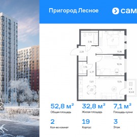 Строим кварталы для жизни с заботой о будущем. Предлагается 2-комнатная квартира комфорт-класса 52, 83 кв.м в корпусе 19 на 3 этаже, в ЖК «Пригород Лесное» Квартира без отделки. Доступность опции «отделка» и возможность комплектации мебелью и декором уточняйте у...