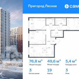 Строим кварталы для жизни с заботой о будущем. Предлагается 3-комнатная квартира комфорт-класса 76, 79 кв.м в корпусе 19 на 3 этаже, в ЖК «Пригород Лесное» Квартира без отделки. Доступность опции «отделка» и возможность комплектации мебелью и декором уточняйте у...