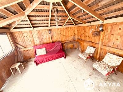 За домом – также зона отдыха, небольшой парник для посадки овощей. Земельный участок имеет продолговатую форму.