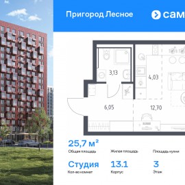 Строим кварталы для жизни с заботой о будущем. Предлагается квартира студия комфорт-класса 25, 7 кв.м в корпусе 13.1 на 3 этаже, в ЖК «Пригород Лесное» Квартира с чистовой отделкой. Доступность дополнительных опций уточняйте у застройщика. Приобрести квартиру возможно по...