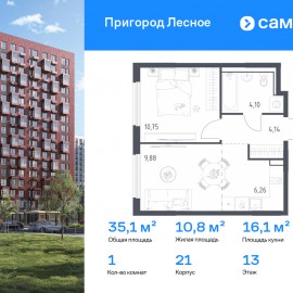 Строим кварталы для жизни с заботой о будущем. Предлагается 1-комнатная квартира комфорт-класса 35, 13 кв.м в корпусе 21 на 13 этаже, в ЖК «Пригород Лесное» Квартира с чистовой отделкой. Доступность дополнительных опций уточняйте у застройщика. Приобрести квартиру возможно по...