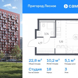Строим кварталы для жизни с заботой о будущем. Предлагается квартира студия комфорт-класса 22, 81 кв.м в корпусе 18 на 3 этаже, в ЖК «Пригород Лесное» Квартира с чистовой отделкой. Доступность дополнительных опций уточняйте у застройщика. Приобрести квартиру возможно по...