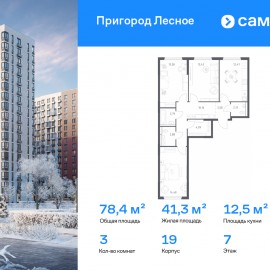 Строим кварталы для жизни с заботой о будущем. Предлагается 3-комнатная квартира комфорт-класса 78, 38 кв.м в корпусе 19 на 7 этаже, в ЖК «Пригород Лесное» Квартира с чистовой отделкой. Доступность дополнительных опций уточняйте у застройщика. Приобрести квартиру возможно по...