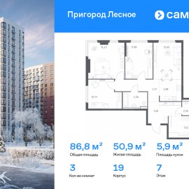 Строим кварталы для жизни с заботой о будущем. Предлагается 3-комнатная квартира комфорт-класса 86, 8 кв.м в корпусе 19 на 7 этаже, в ЖК «Пригород Лесное» Квартира без отделки. Доступность опции «отделка» и возможность комплектации мебелью и декором уточняйте у...