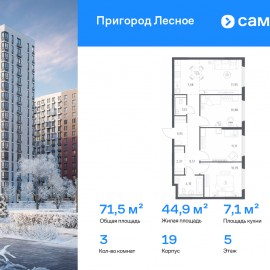 Строим кварталы для жизни с заботой о будущем. Предлагается 3-комнатная квартира комфорт-класса 71, 52 кв.м в корпусе 19 на 5 этаже, в ЖК «Пригород Лесное» Квартира без отделки. Доступность опции «отделка» и возможность комплектации мебелью и декором уточняйте у...